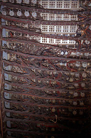 And here is the back of the frame (after opening) where the coils and relays are wired up. What a mess!