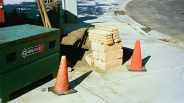 The street, driveway, and garage were not areas renovated by this work, but the work affected them at least while it was ongoing, and we took the following photographs of it.