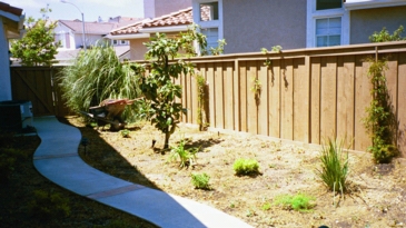 This is the narrower of the two side yards. It is on the northeast side of the house and is shady all day in winter, and after mid-day in summer.