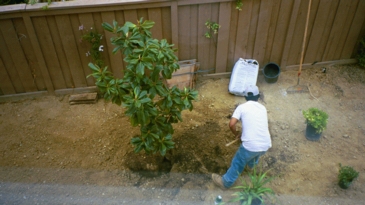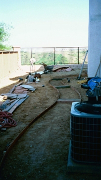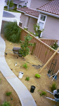 This is the narrower of the two side yards. It is on the northeast side of the house and is shady all day in winter, and after mid-day in summer.
