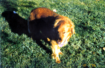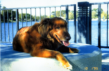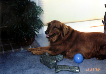 January 19, 1994 On my bed in Tustin He loved that rawhide bone. |
