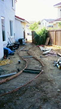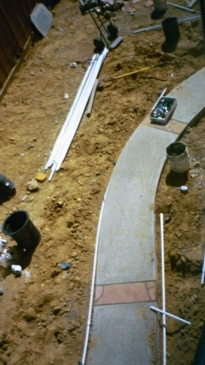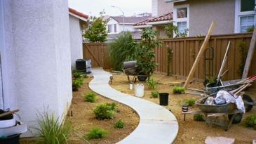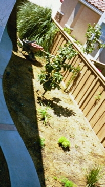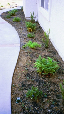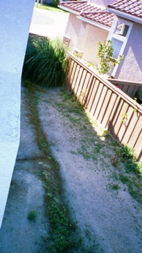 This is the narrower of the two side yards. It is on the northeast side of the house and is shady all day in winter, and after mid-day in summer.